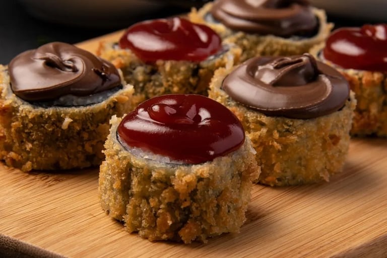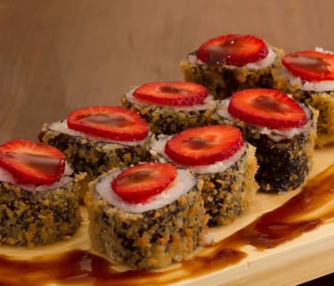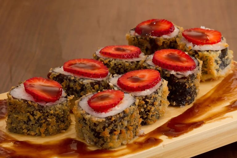 ✔️ Aprende paso a paso a preparar distintos tipos de Sushi Dulce: con arroz, crepe, bizcocho, masa de galleta y combinaciones, siguiendo recetas claras y detalladas.