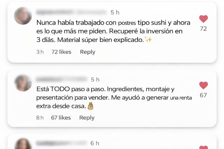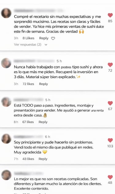 ✔️ Accede a estrategias reales de venta y promoción, para ofrecer tus sushi dulce en redes sociales o de forma presencial.
